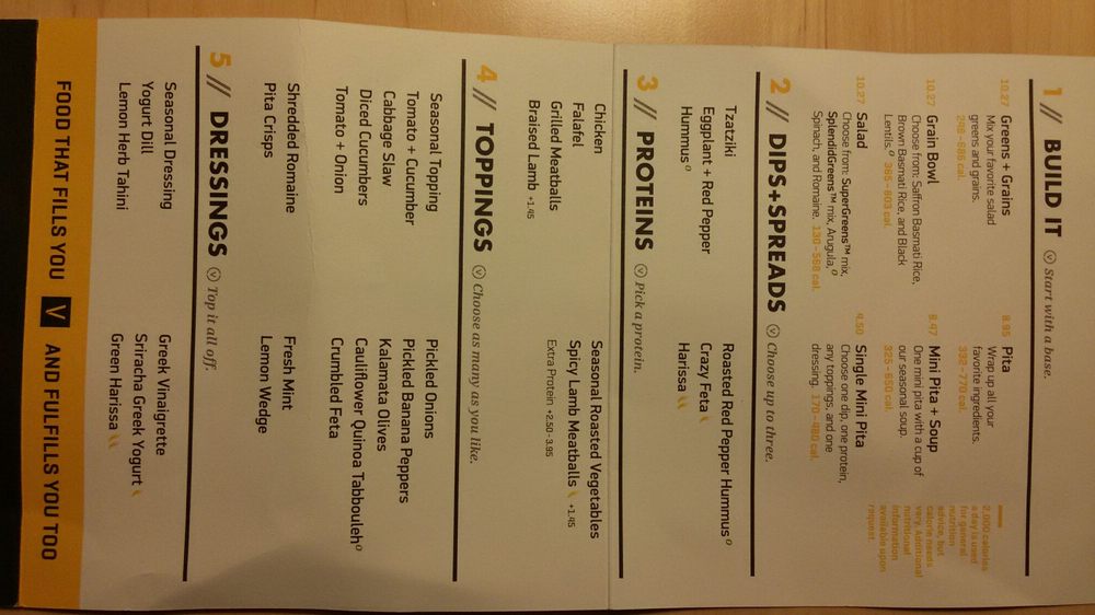 The menu boasts an array of options, allowing you to choose from greens like arugula or baby spinach, paired with a choice of grains including saffron basmati rice and brown rice. Top your creation with delightful dips like tzatziki or harissa, bringing a unique twist to every bite. Don't overlook their chocolate chip cookies, freshly crafted by local bakers and perfect for a sweet finish.